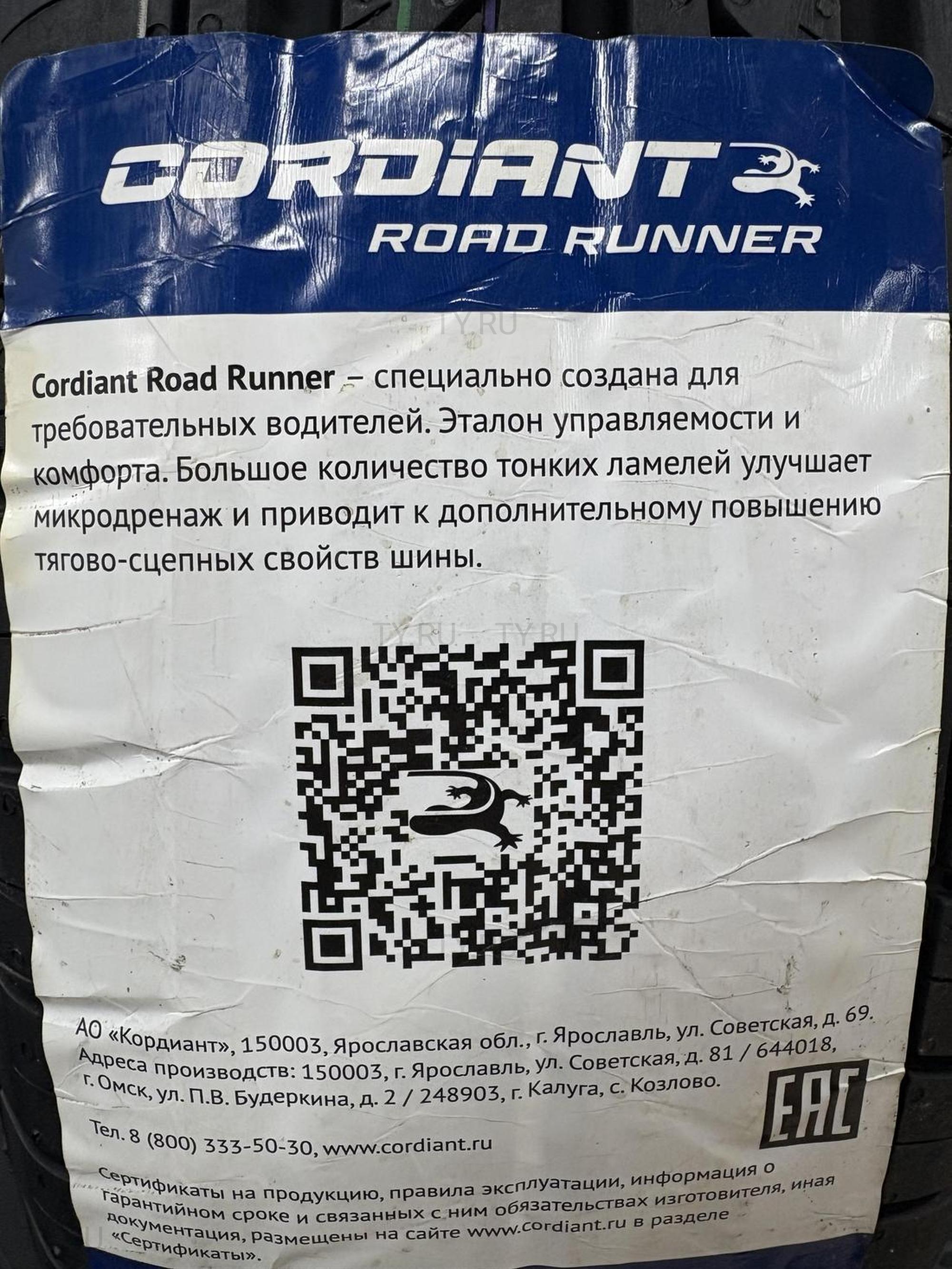Cordiant Road Runner - эталон управляемости и комфорта, создана для требовательных водителей. Большое количество тонких