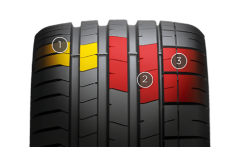 Шина на 80% состоит из резины. При движении в разных участках шина испытывает разную нагрузку, поэтому создание покрышки требует уникальной рецептуры. Резиновая смесь состоит из большого количества компонентов – от 20 до 80, среди них: