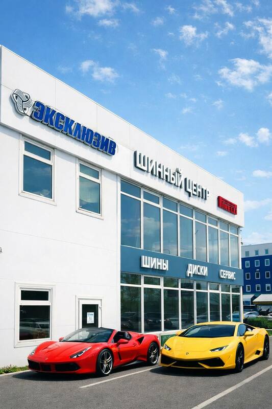 Шинный центр "Эксклюзив" находится в поселке Ленсоветовский, на Московском шоссе 231, к. 5